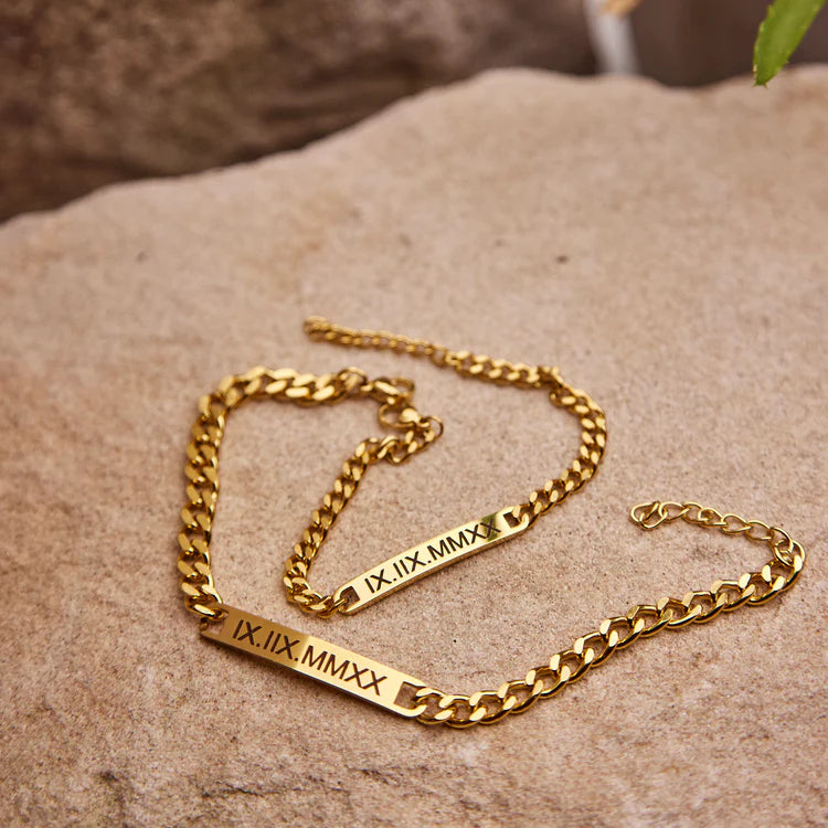 Ein Datum bleibt für immer in Erinnerung – der Tag, an dem ein Kind zur Welt kam, der Tag, an dem du „Ja“ gesagt hast, oder der Tag, an dem alles begann. Diese goldene Kette trägt diese besonderen Momente sichtbar: Zarte, gravierte Plättchen mit Namen und Daten, die zählen.